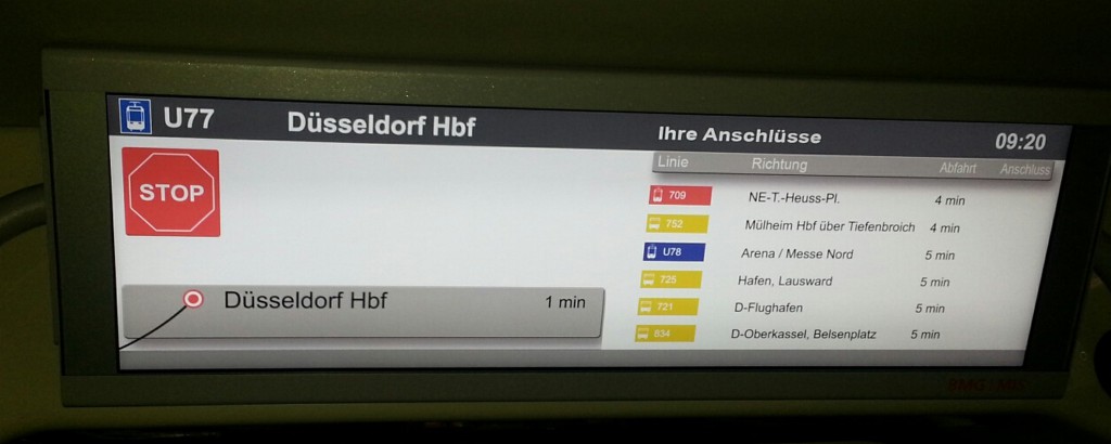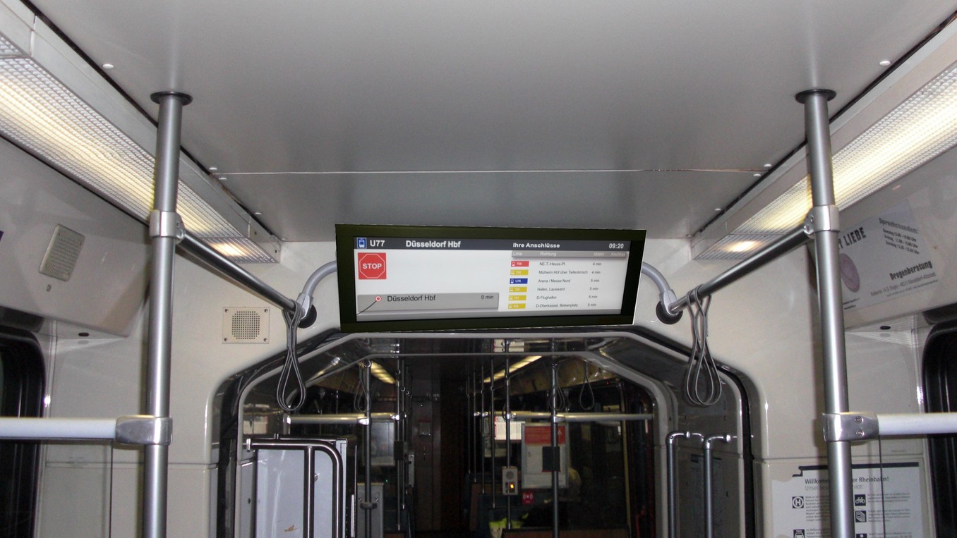 Angezeigt werden die Infos auf Displays: farbige, helle und deshalb gut lesbare Bildschirme, die alle Anschluss-Verbindungen zeigen, die Fahrgäste an den kommenden Haltestellen nutzen können. Rheinbahn-Sprecher Georg Schumacher bestätigt: „Wenn das System einmal läuft, zeigt es nicht nur die Linien an. Sondern auch deren Zielbahnsteige — alles mit minutengenauer Abfahrtszeit.“