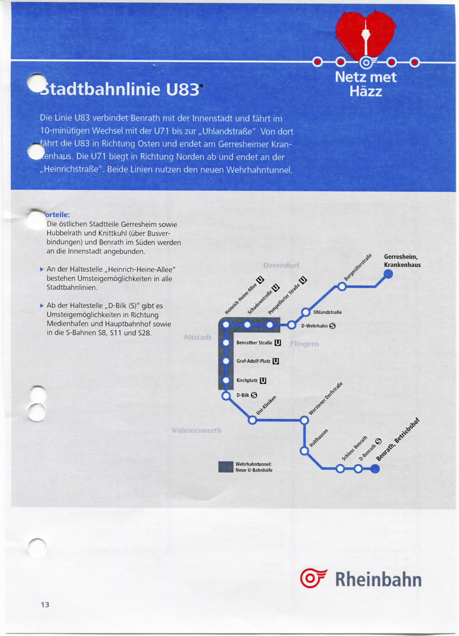 Der Wehrhahn-Tunnel machst’s möglich: Im Rahmen ihres neuen Streckennetzes „Netz met Häzz“ (Lokalbüro berichtete) kommt auch eine neue Stadtbahnlinie: Die U83.
