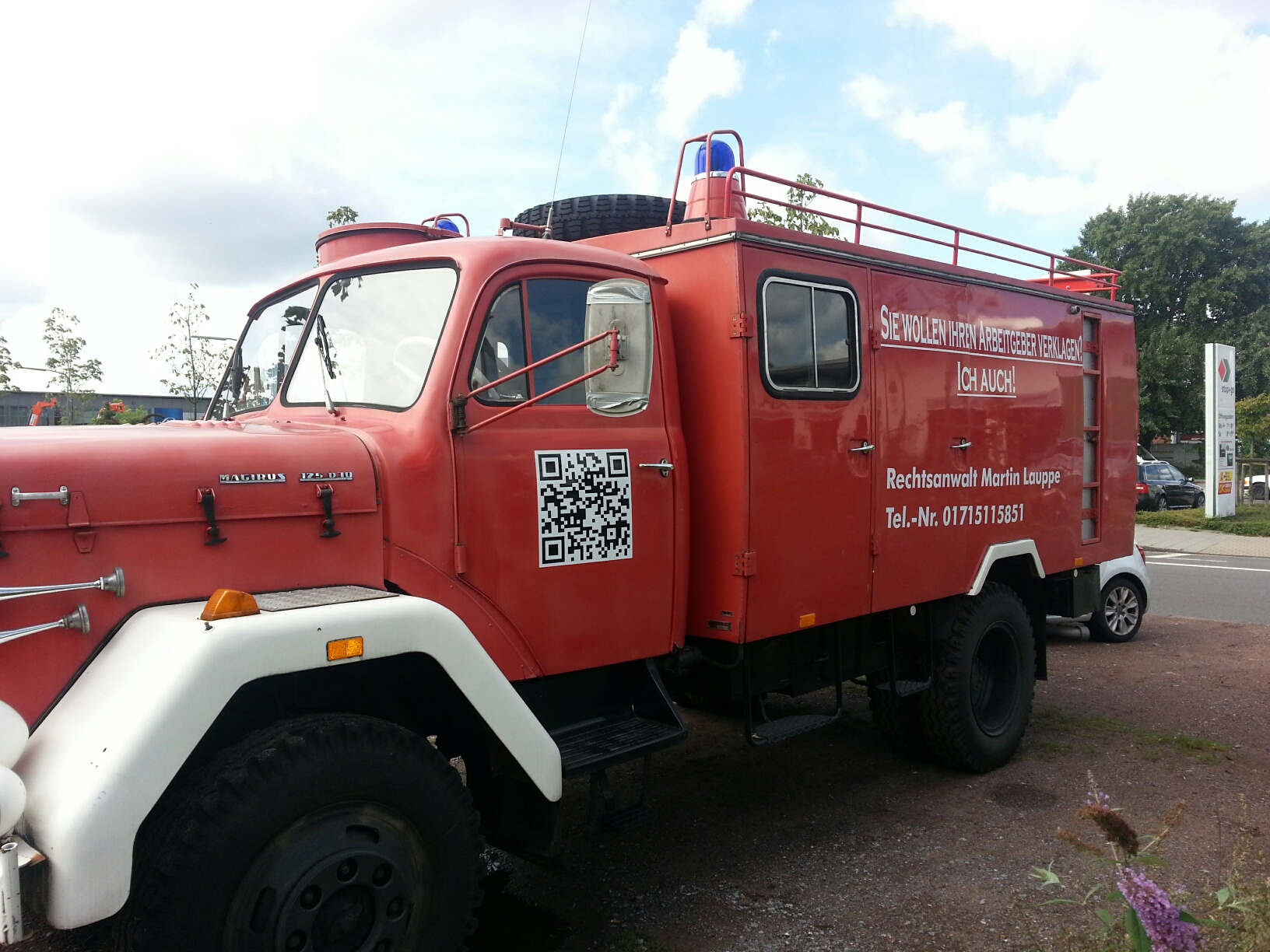 „Sie wol­len ihren Chef ver­kla­gen? Ich auch.“ Flotte Sprü­che auf knall­ro­ten Feu­er­wehr­au­tos — so wirbt der Düs­sel­dor­fer Anwalt Mar­tin Lauppe-Ass­mann um Kli­en­ten für seine Kanz­lei in Düsseldorf-Eller.