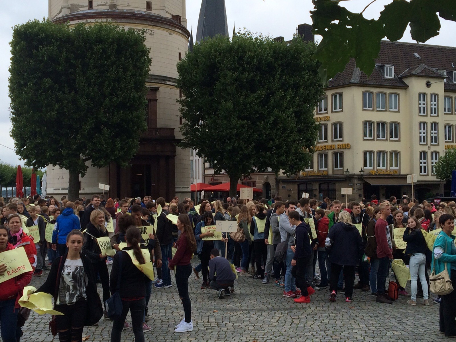 Schü­ler Demo am 18. Aug. 2015 auf dem Burg­platz. Foto: LOKALBÜRO