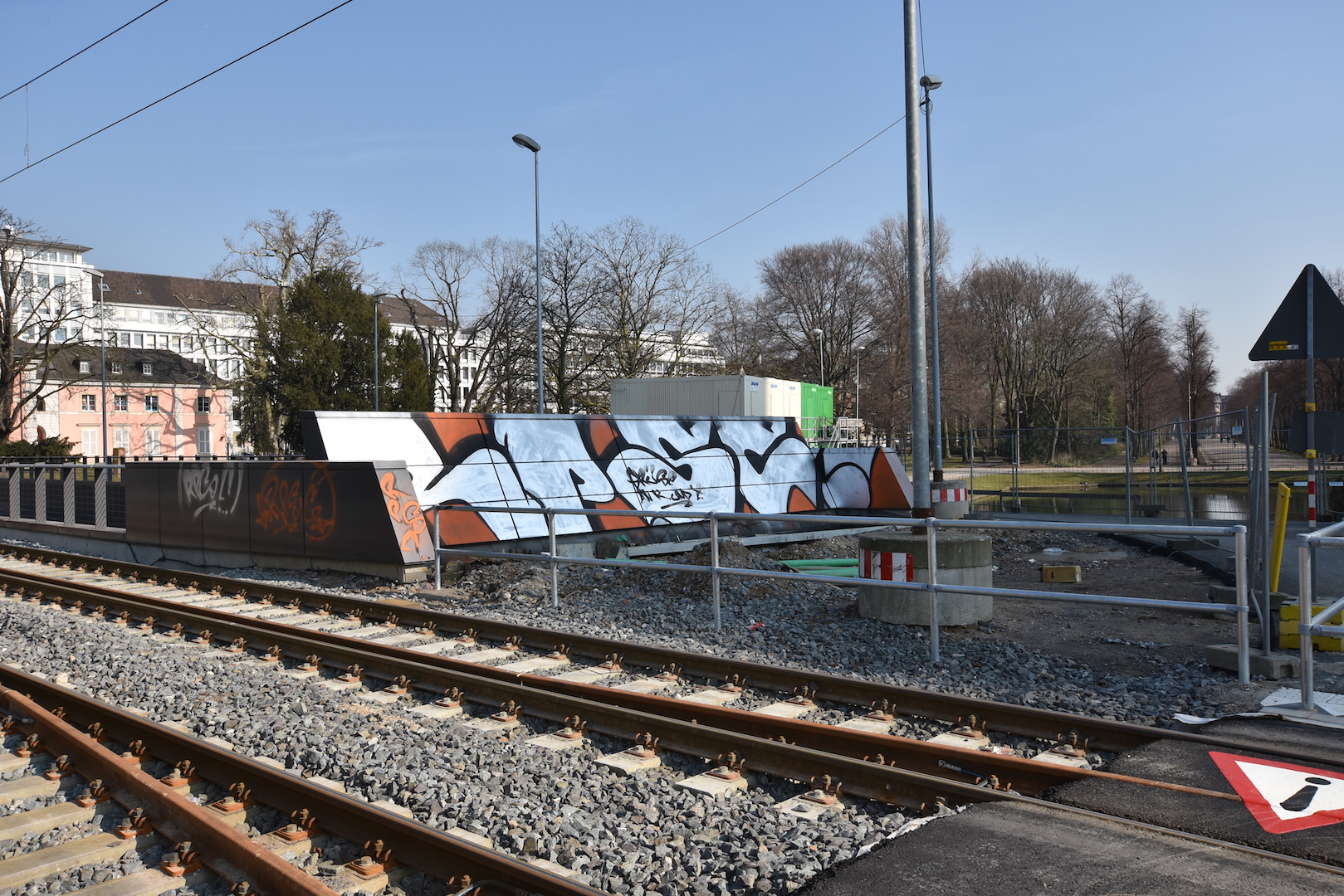 Noch nicht ganz fertiggestellt und schon voller Graffiti. Die Verkleidungen an der Ausfahrt des Tunnels zur Kaiserstraße sind schon nach kurzer Zeit völlig voller Graffiti.