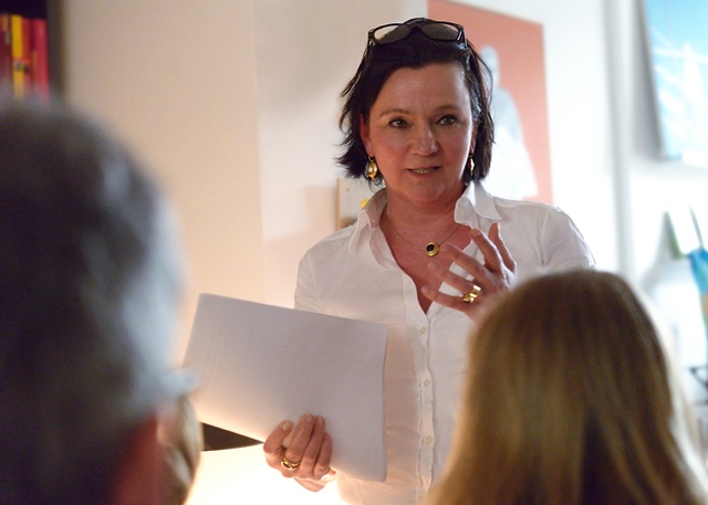 Ste­fa­nie Koch bei einer ihrer Vor­le­sun­gen Foto: Privat