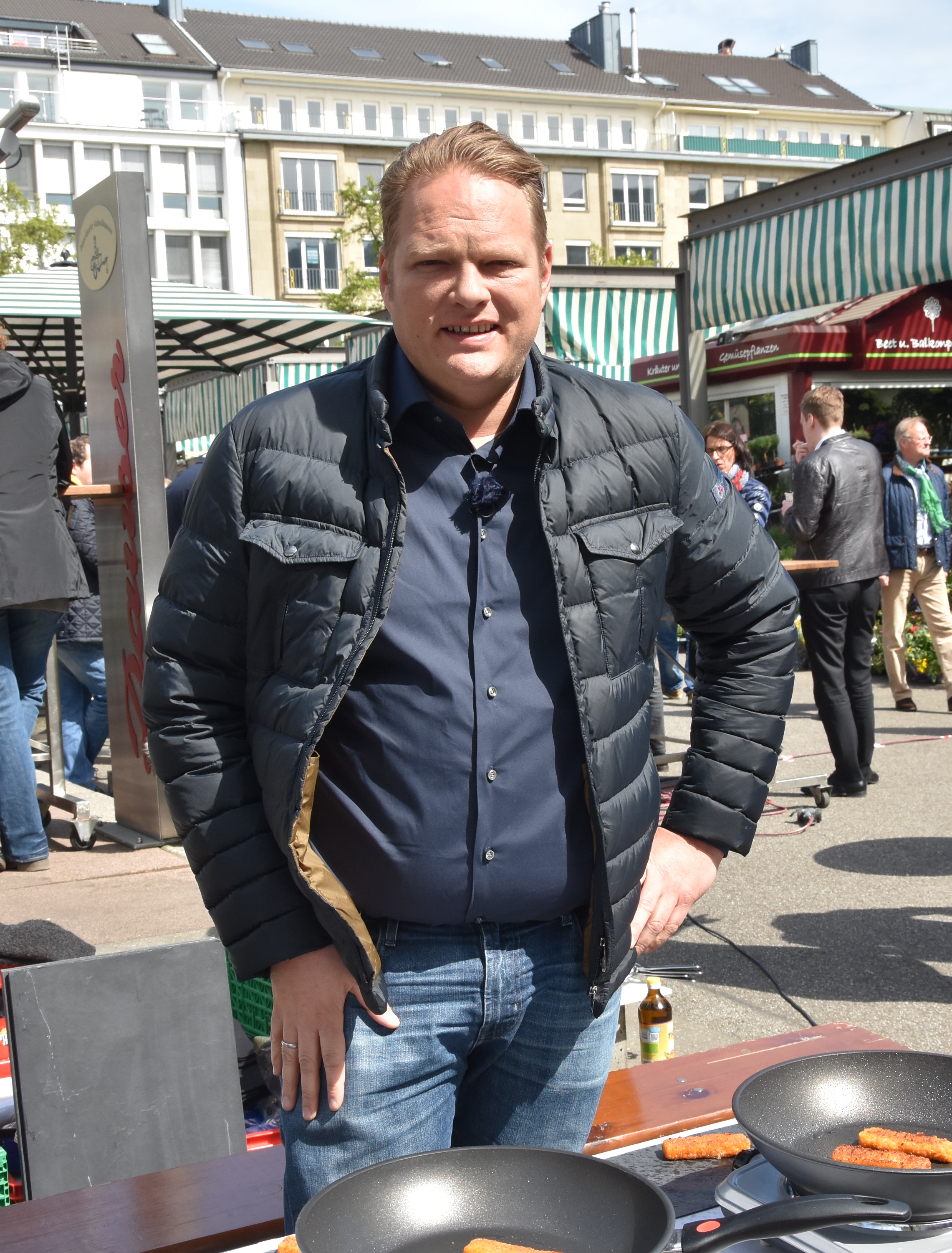 Björn Freitag aus Dorsten, Chef des Sternerestaurant “Zum Goldenen Anker”, war heute in ganz besonderer Mission auf dem Carlsplatz.