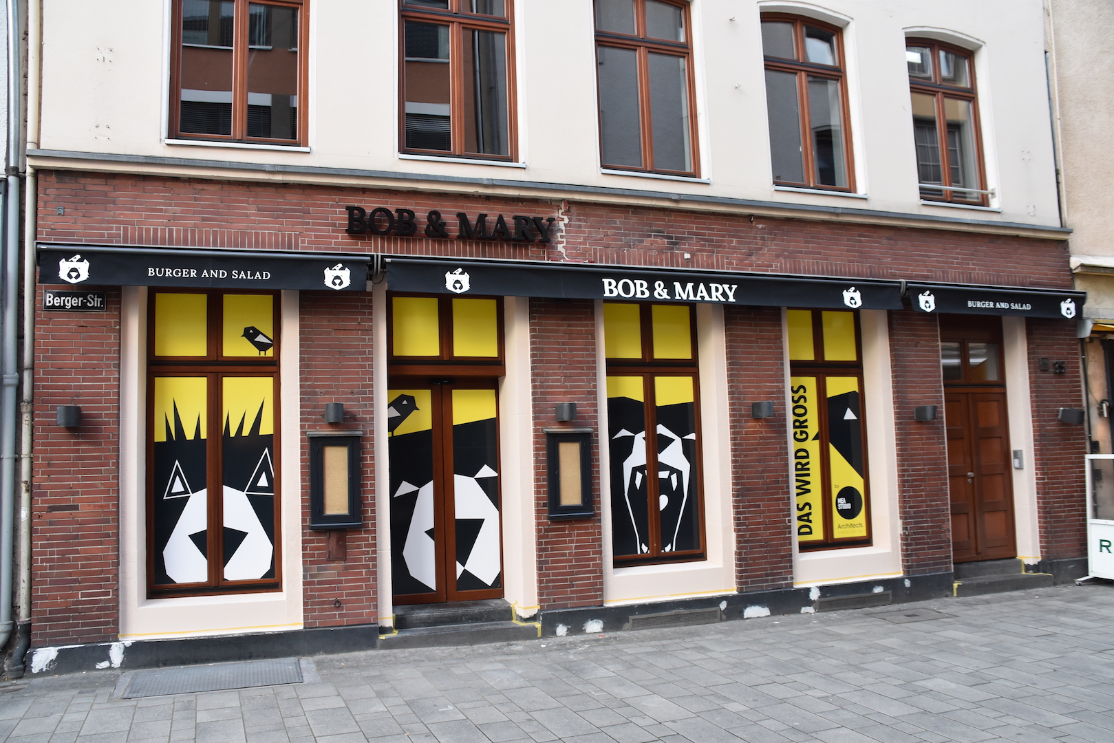 Der neue Bur­ger­la­den Bob & Mary wird wohl in Kürze eröff­nen. Die Außen­wer­bung und die Mar­ki­sen sind bereits ange­bracht. Wie uns der Inha­ber sagte, ver­sucht man zu Pfings­ten zu eröff­nen. Es hat immer wie­der bau­li­che Rück­schläge gege­ben. Ofmals sind nach­dem die Arbei­ten abge­schlos­sen waren alte Lei­tun­gen geplatzt, somit waren die Arbei­ten für die Katz.