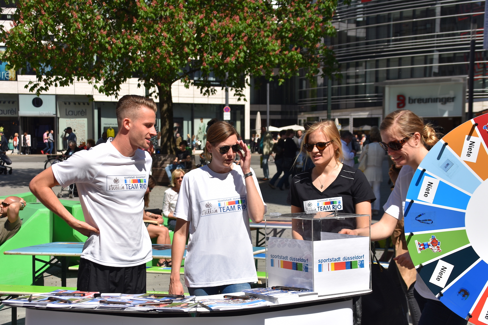 Heute am Freitag haben Sie noch bis 17 Uhr die Möglichkeit Düsseldorfer Sportler auf dem Schadowplatz zu treffen, die demnächst in Rio bei der Olympiade antreten.