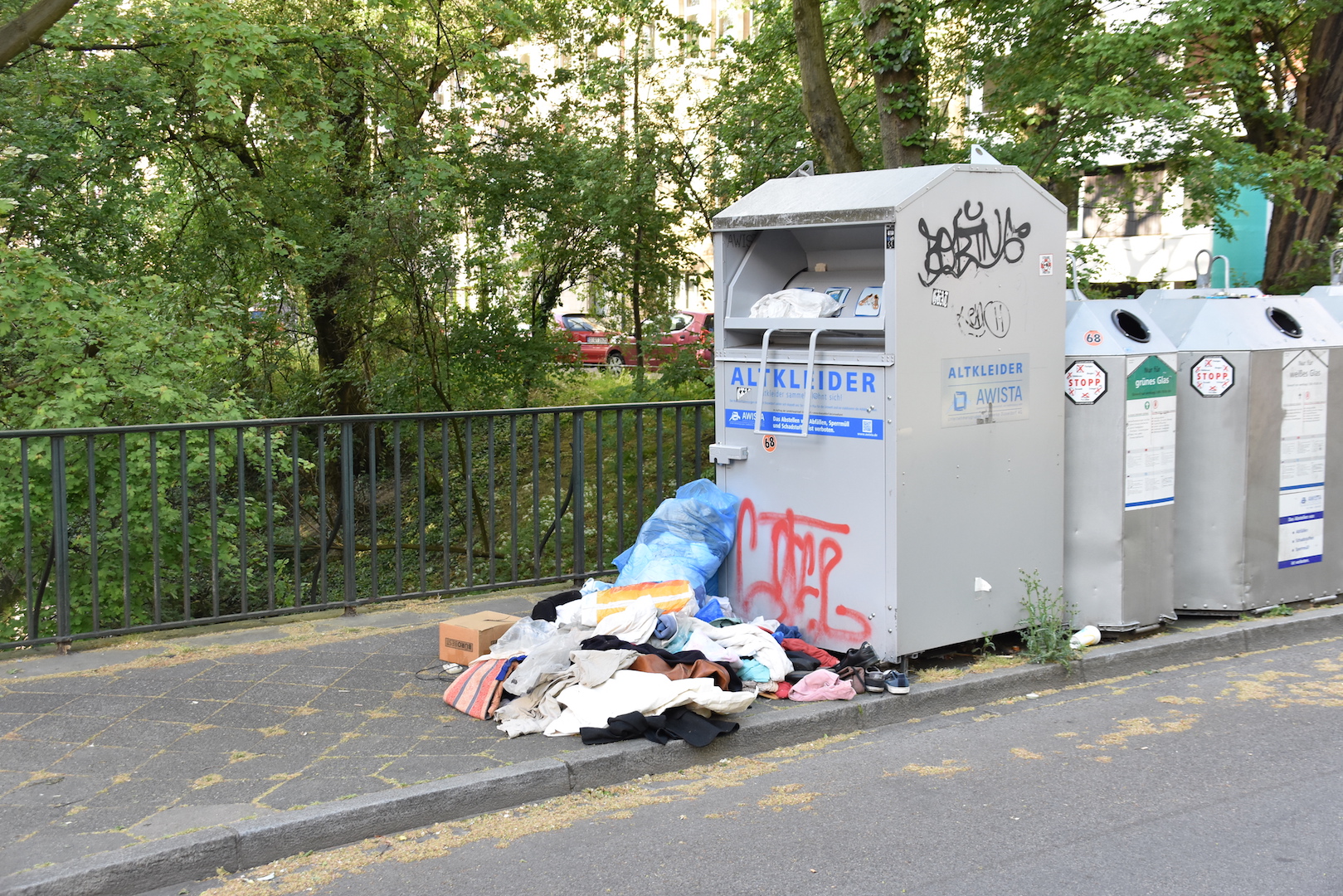 Auf der Prinz Georg Straße haben Unbekannte über Pfingsten den Altkleider-Container ausgeräumt, die Sachen durchsucht und dann einfach liegen gelassen. Dieses sieht man leider immer öfters!