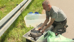 Erst mit Hilfe eines Spatens gelang es, die Schnappschildkröte in eine Metallkiste zu packen. Ein Reptilienfachmann übernahm den Transport in einen Zoo. Experten raten, dass unerfahrene Menschen nicht versuchen sollten, nach aggressiven, größeren Schildkröten zu greifen. Deren Biss ist äußerst schmerzhaft und kann zu schweren Verletzungen führen.