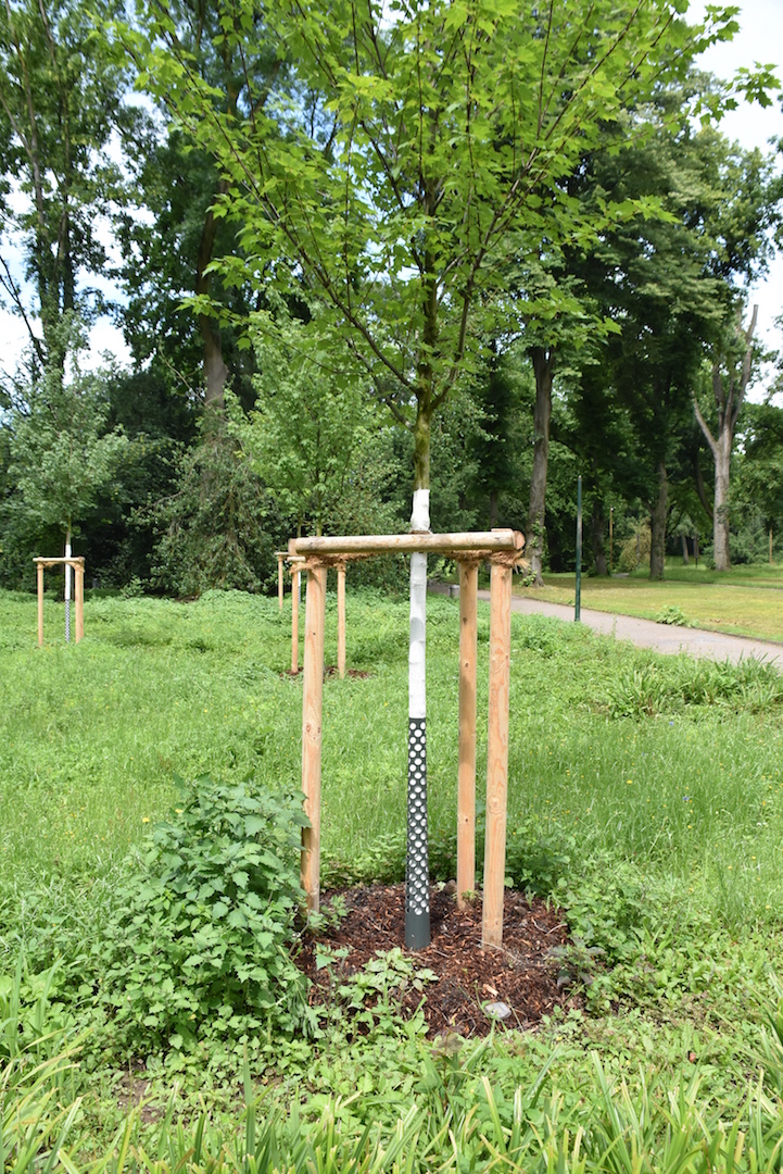 Lokalbüro hat sich immer wieder gefragt, warum haben die frisch gepflanzten Bäume im Hofgarten und anderswo eine Kunststoffmaschette am Stamm? Heute morgen haben wir die Gärtner die im Hofgarten arbeiteten gefragt.