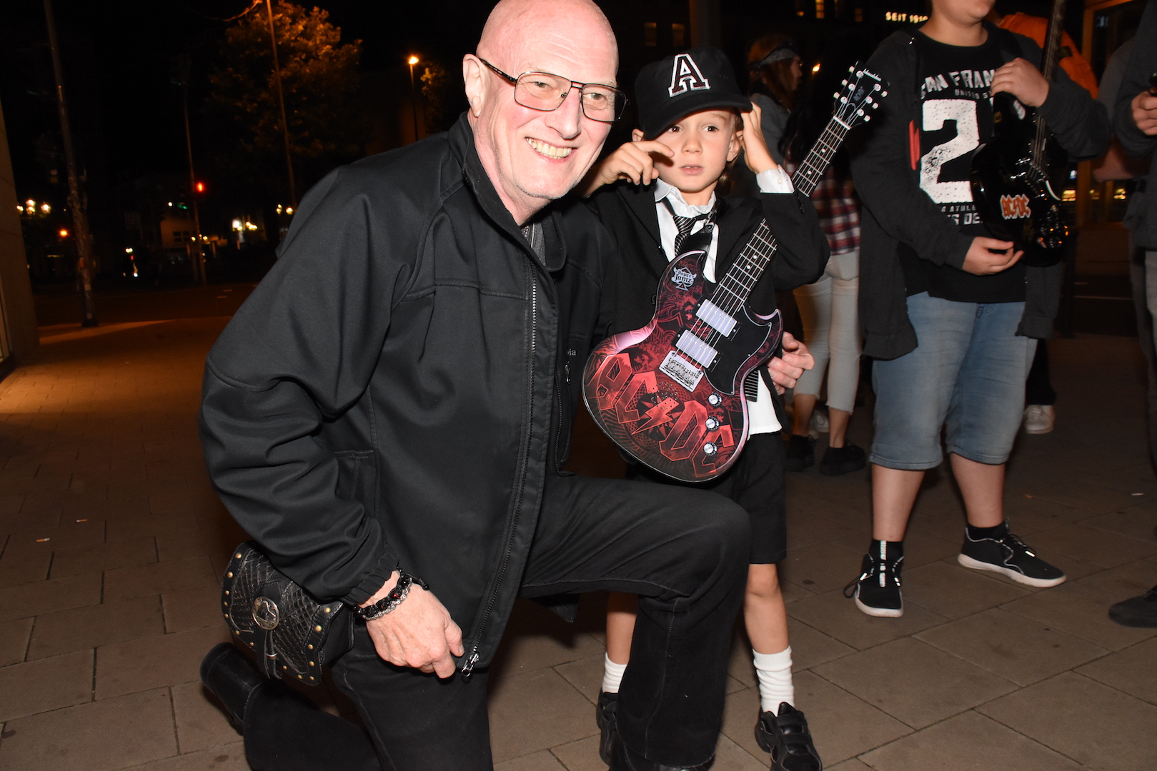 AC/DC gibt am Mittwoch ein Konzert in der Arena. Lokalbüro lag Dienstagabend auf der Lauer vor dem Breidenbacher Hof. Einige Fans erhofften sich ein Autogram von ihren Idolen zu bekommen und warteten geduldig auf die Stars. Lokalbüro wartetet ebenfalls geduldig. Dann kam tatsächlich Chris Slade frohgelaunt aus der Altstadt. Gerne nahm er sich Zeit für seine Fans. So sind eben große Künstler.