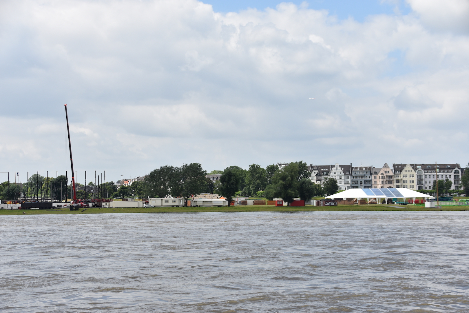 Bis zur Kirmeszeit kann es nicht mehr lange dauern! Auf den Rheinwiesen haben bereits die ersten Aufbauten für die größe Kirmes am Rhein begonnen.