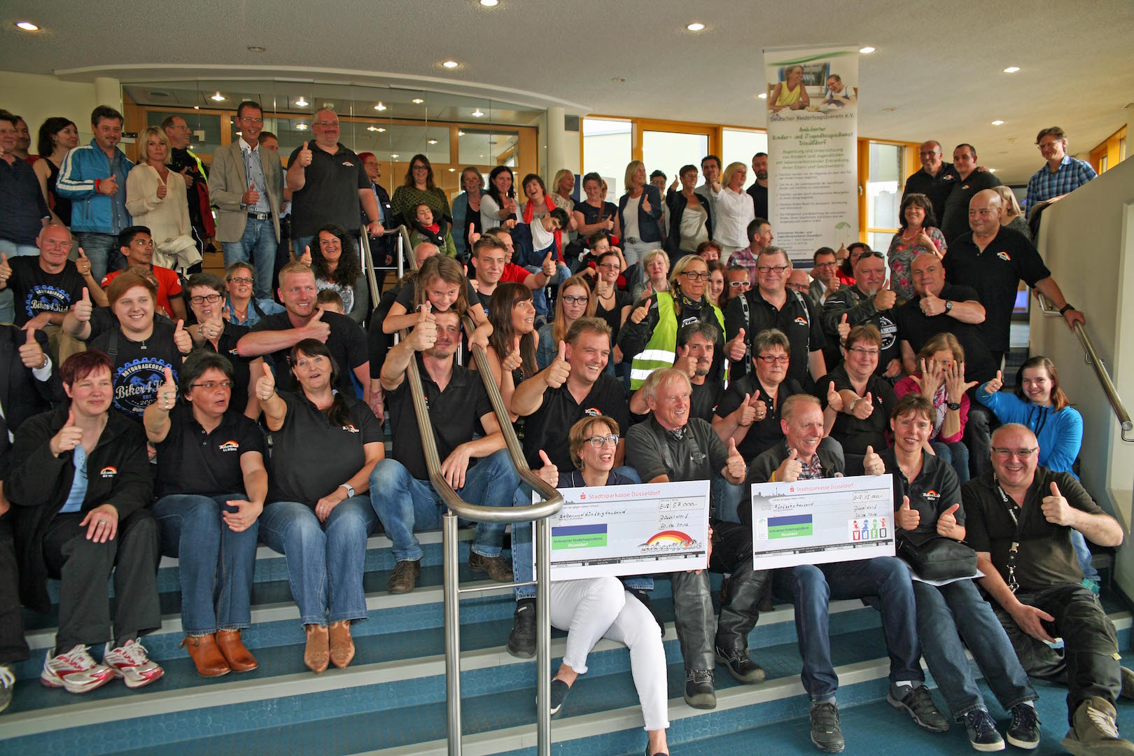 Wer hätte das gedacht, das der Motorradkorso 2016 das gute Ergebnis von 2015 noch toppen kann. Wurden in diesen Jahr doch insgesamt 72tsd € gespendet. Im großen Saal des Deutschen Diabetes-Zentrums in Düsseldorf hatten sich rund 100 Gäste eingefunden um bei der Spendenübergabe dabei zu sein. 57tsd gingen an den Ambulanten Kinder- und Jugendhospizdienst Düsseldorf und 15tsd an den Verein Freunde und Unterstützer der Kinderhospitzarbeit Düsseldorf.