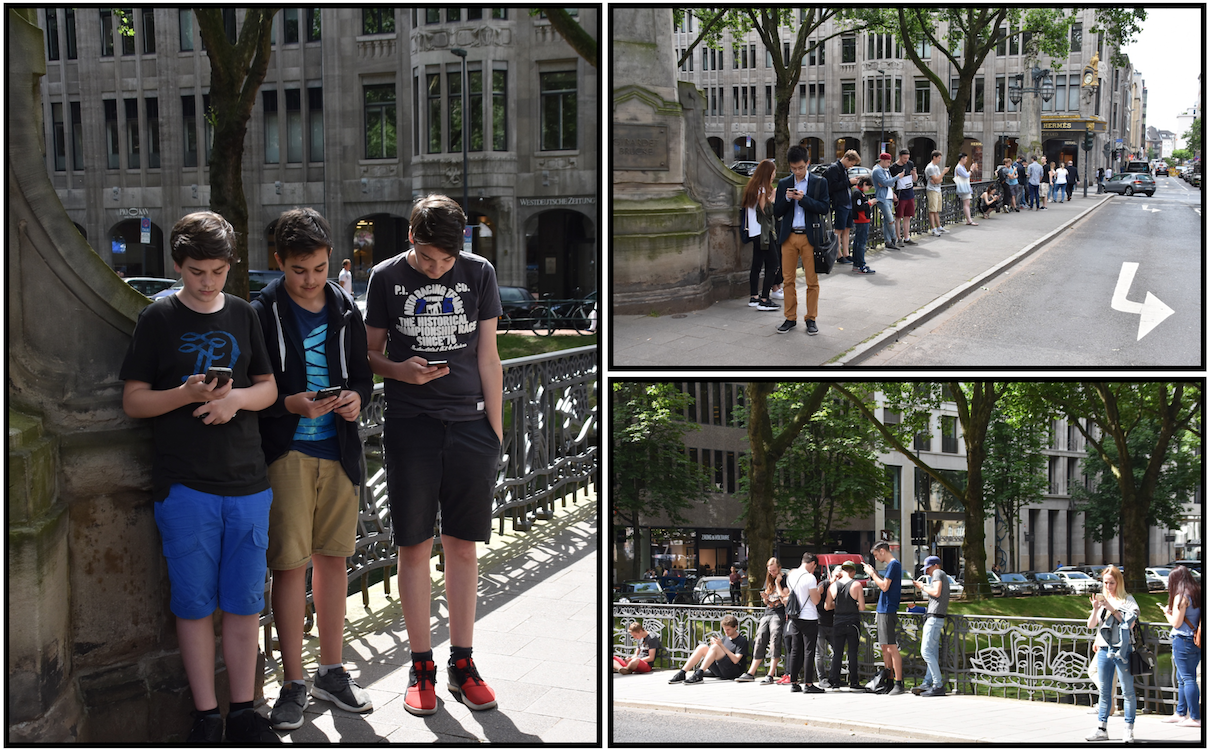 Lokal­büro fragte drei Schü­ler aus Mett­mann, Jonas (14), Eli­yah (14) und Lukas (15): „Das ist das neue Poké­mon Go von Nin­tendo und Google Maps. Der Ham­mer, wir spie­len es seit letz­ten Frei­tag.“ Die Jungs erklä­ren das Spiel: „Die App setzt die Poké­mon-Figu­ren auf dem Smart­phone-Bild­schirm in die reale Umge­bun­gen. Ein Haus, eine Brü­cke, unter einen Baum. Man muss sie suchen und fangen.“