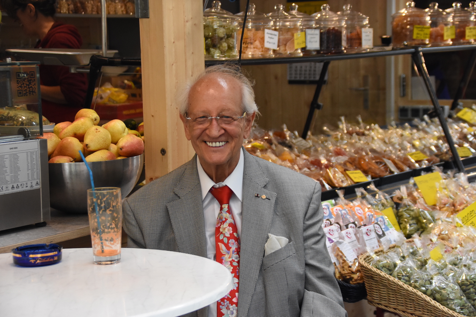 Heute beim Schlendern über den Carlsplatz trafen wir Albert Bitter ( 78 ) in bester Laune am Saftladen. Albert Bitter war bis vor vier Jahren Herausgeber des Top Magazins in Düsseldorf. Heute genießt er immer mehr – mit Ehefrau Margot – das Rentenerdasein. Wie er uns sagte, wird er langsam ruhiger. Albert entschleunigt: “Meine Reisen nach Moskau habe ich eingestellt, selbst auf meinen geliebten Urlaub habe ich in diesem Jahr verzichtet.” Dieses Jahr hat er sich zwar bei dem Altennachmittag auf der Kirmes bei der Tombola eingesetzt, aber auch zum letzten Mal.