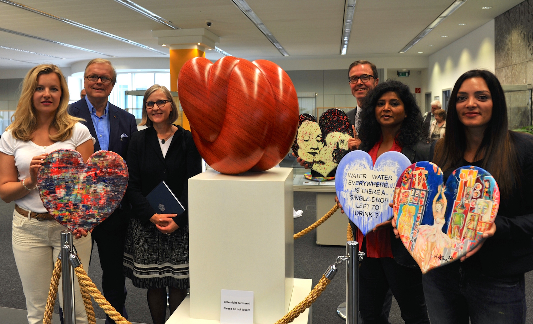 Damit setzen die 23 internationalen KUNST-HERZEN FÜR UNICEF nach Stationen in Köln, Bremen, Hamburg, Stuttgart und Berlin ihre Deutschland-Tour bei uns am Rhein fort.