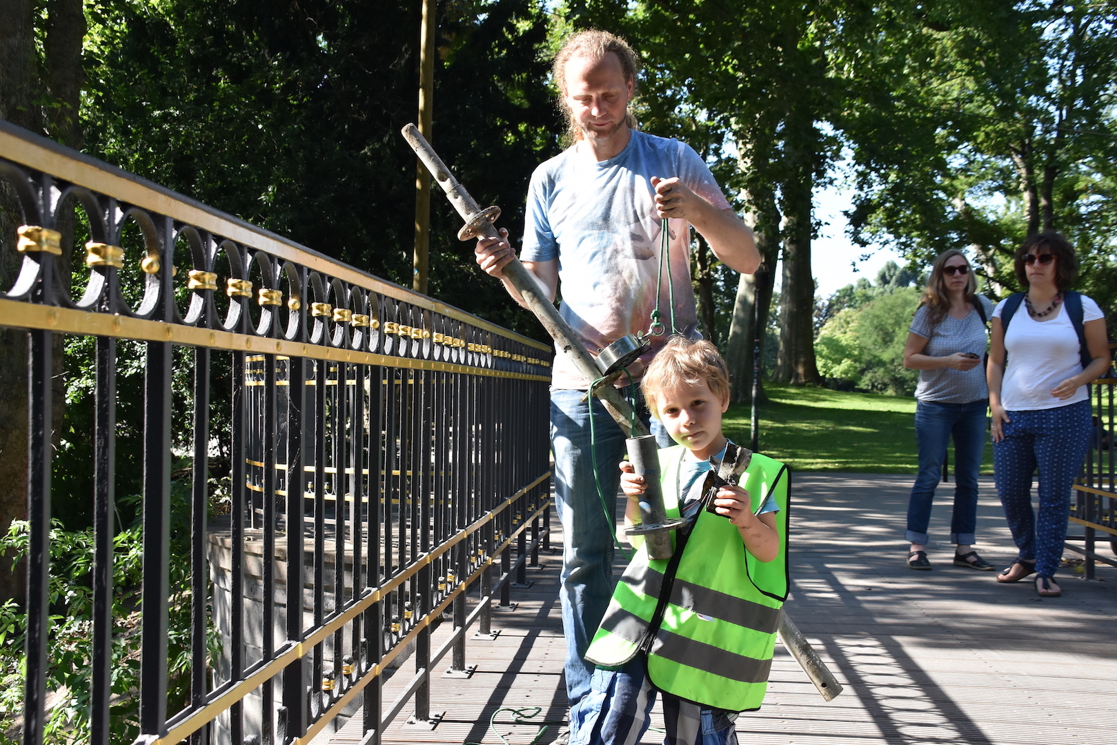 Was macht ein Vater mit seinem Sohn auf der Goldenen Brücke im Hofgarten? Nein, nicht Pokémon spielen — die beiden angeln.