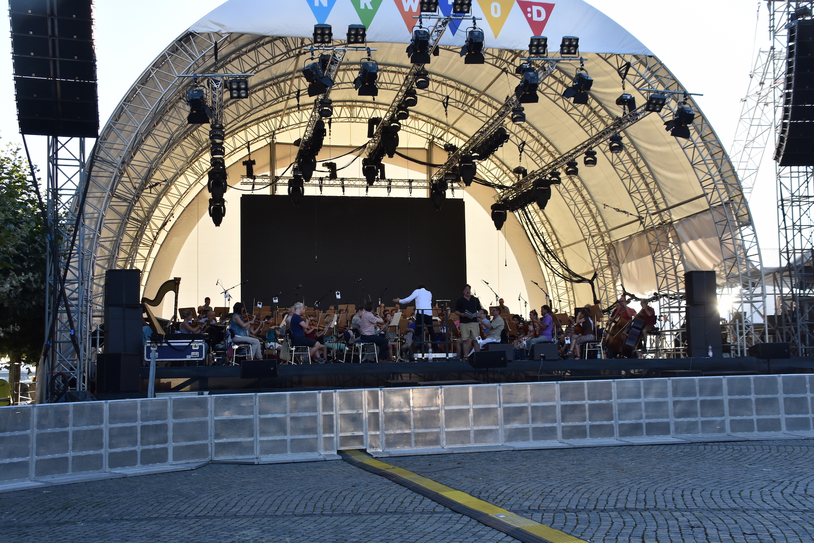 Die Besucher der Altstadt bekamen heute Abend am Burgplatz unvorbereitet einen musikalischen Genuss geboten. Die Düsseldorfer Symphoniker und die Künstler der Deutschen Oper am Rhein probten für ihren großen Auftritt am Sonntag.