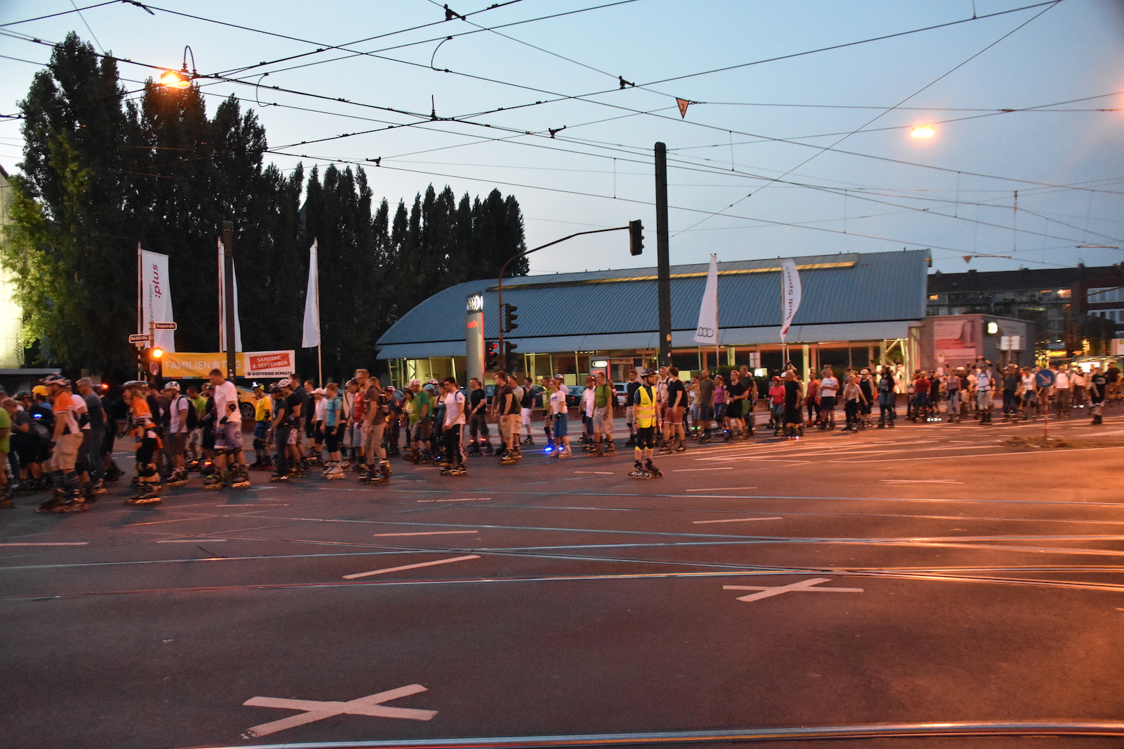 Heute zog die letzte Roll­nacht für 2016 durch Düs­sel­dorf. Rund 5.000 Teil­neh­mer nah­men daran teil. Die Stre­cke ging über 22 km quer durch Düs­sel­dorf.  Das Foto wurde Krupp­straße / Ecke Ober­bil­ker Allee gemacht. Der Start erfolgte um 20 Uhr am Rhein­ufer. Um 21 Uhr wurde eine kleine Pause ein­ge­legt und dann ging es zurück. Die Rück­kehr wird gegen 22:30 erfolgen.