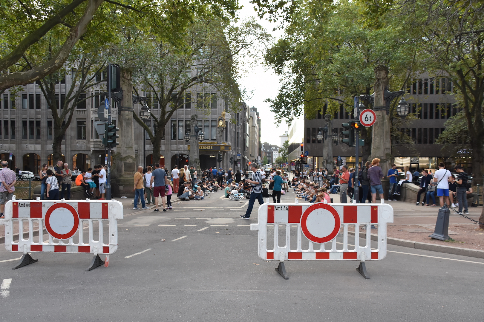 Bereits am Sams­tag­nach­mit­tag war die Pokè­mon­brü­cke wie­der voll mit Pokè­mon­jä­gern. Auf den Bord­stei­nen saßen die Spie­ler wie gehabt, einige hat­ten auf dem Bür­ger­steig bereits ihre Stühle aufgebaut.