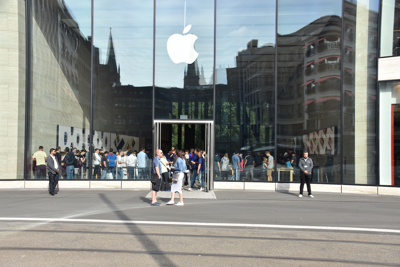 Seit Freitag ist das iPhone 7 auf dem Markt. Heute herrschte im Apple Store am Kö-Bogen gemäßigter Andrang. Dies lag daran, das diesmal nur Kunden ein Handy bekamen, die vorbestellt hatten. Mit der Bestätigung bekam der Kunde einen Termin zur Abholung seines neuen Handy’s. Damit hat Apple das frühe Anstellen verhindert.
