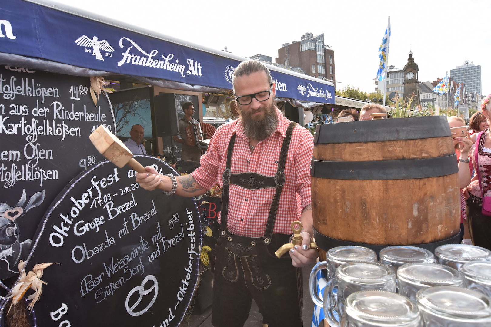 Pünktlich mit dem Glockenschlag 12 Uhr wurde das Wiesenbier an den Kasematten durch den Düsseldorfer Photograf Frank Dursthoff angeschlagen. Viele Besucher hatten sich für dieses Ereignis versammelt. Das erste Fass wurde natürlich kostenlos ausgeschenkt.
