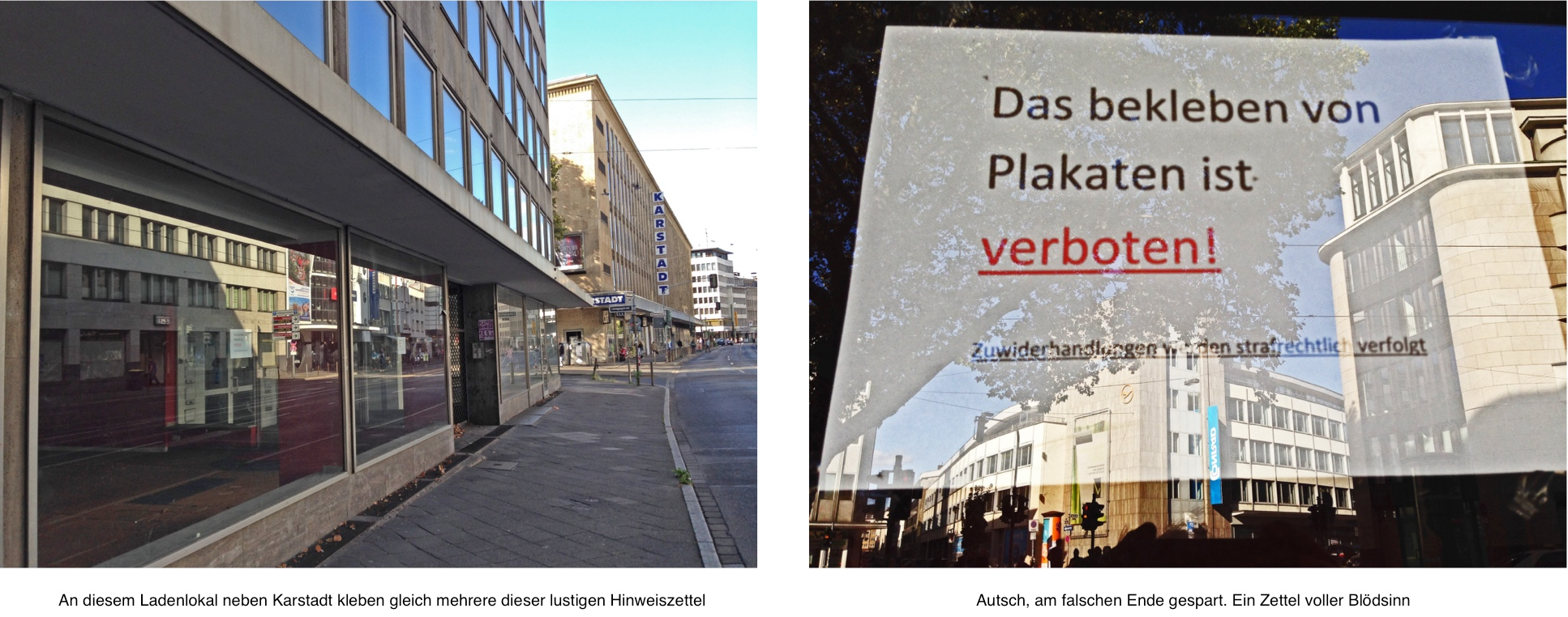 Denn hier stellt sich sofort die Frage: Was bitte soll der arme Anwalt im Falle eines Fal­les straf­recht­lich ver­fol­gen? Das Pla­kate beklebt werden?