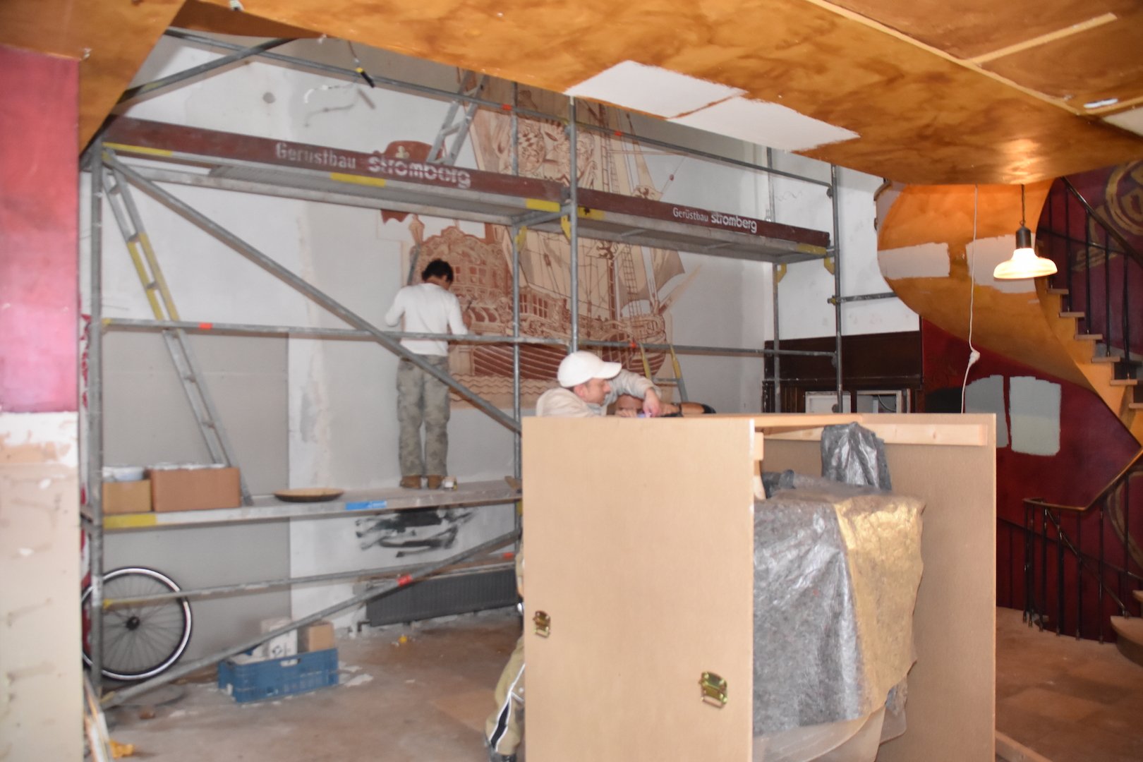 Reno­vie­rungs­ar­bei­ten im “Café Vélo” Foto: LOKALBÜRO