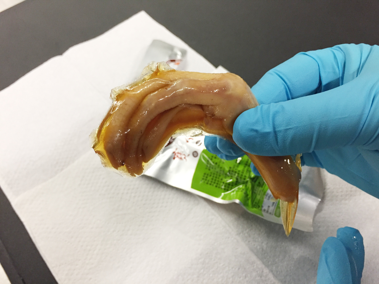 Um zu beweisen, dass die exotischen „Snacks“ tatsächlich zum Verzehr gedacht und geeignet sind, wollte der Reisende noch vor Ort einen Entenfuß verspeisen. Zoll- sprecher Michael Walk: „Schon alleine aufgrund des gewöhnungs-bedürftigen Anblicks und Geruchs verzichteten die Zöllner auf eine Demonstration.“