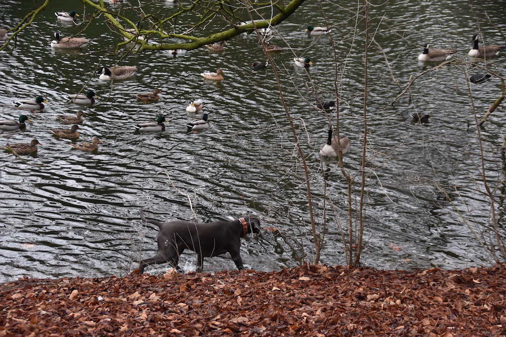 Anscheinend ist es hier am Hofgartenteich üblich, das Jagdhunde immer wieder das Federvieh jagen. Hier sollte das Ordnungsamt mal genauer kontrollieren.