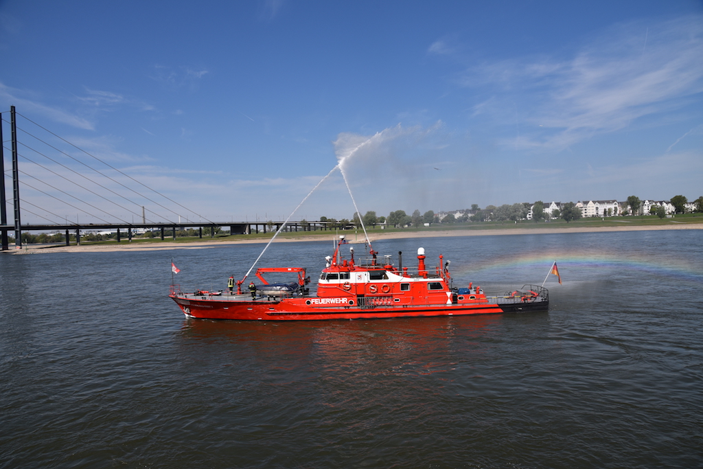 Im Zielbereich erwartete das Feuerschiff die Läufer mit einer riesigen Wasserfontäne. Diese zeichnete dann auf den Rhein einen tollen Regenbogen. Der Sieger durchlief die Ziellinie bei 2:10:30