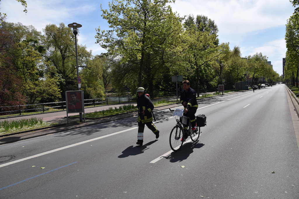 An der Strecke herrschte überall eine tolle Stimmung. Die Läufer wurden von einem begeisterten Publikum angefeuert. Ein Feuerwehrmann ging in voller Ausrüstung an den Start.