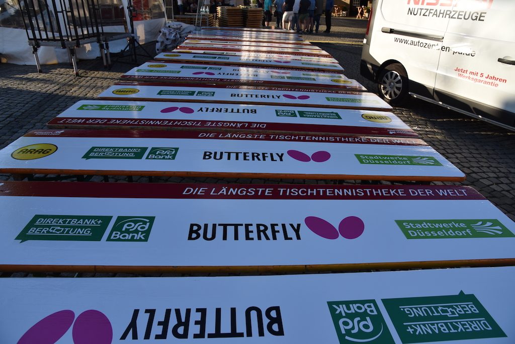 Morgen am Samstag, den 27. Mai 2017, soll in Düsseldorf “Die längste Tischtennis-Theke der Welt” aufgebaut sein. Vom Burgplatz durch die ganze Altstadt sollen hunderte von Tischtennisplatten stehen an den gespielt wird. Um 11:30 beginnt das Spektakel. Zeitgleich findet auf dem Marktplatz/Burgplatz ein Festival des Tischtennissports mit einem Jedermann-Turnier statt.