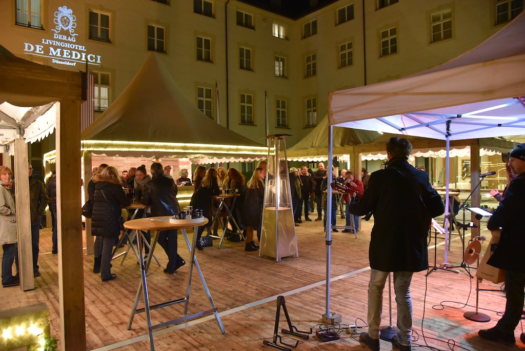 Am Freitag, den 17.11.2017 eröffnete um 16:00 Uhr der Innenhof des Derag Livinghotels De Medici in der Düsseldorfer Altstadt seine weihnachtlichen Pforten für den Winterzauber – ein kleiner, erlesener kulinarischer Weihnachtsmarkt im künstlerischen Ambiente der historischen Hotelanlage in der Nähe von Rheinufer und Königsallee.