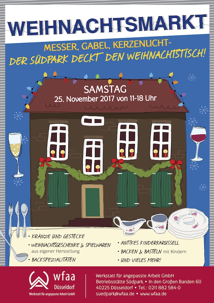 Weih­nachts­markt im Bau­ern­hof. Bes­ser gesagt im Stall des Bau­ern­ho­fes im idyl­li­schen Süd­park. Dort heißt es am Sams­tag, den 25. Novem­ber: „Mes­ser, Gabel, Ker­zen­licht- der Süd­park deckt den Weih­nachts­tisch“. Los geht’s um 11 Uhr los, bis 18 Uhr kann im Hof mit der Adresse „In den Gro­ßen Ban­den 60“ nach Her­zens­lust geschnüf­felt, geschnööft und geschlemmt werden.