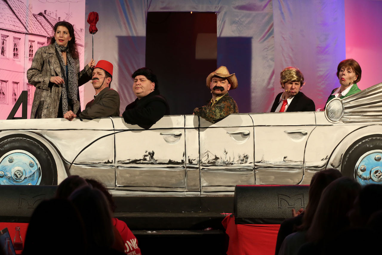 Frech, rotzig, intelligent-politisch kommt die Truppe aus dem Neusser TAS (Theater am Schlachthof) wieder daher. Und endlich auch wieder zum Brüllen albern. Eine ihrer Stärken, die beim letzten Stunk etwas auf der Strecke geblieben war. Zur Geschichte: Da seit dem Amtsantritt von Donald Trump so einiges schief läuft im Weißen Haus, erwägt der Inner Circle ein Survival Training unter NSA-Aufsicht. Kurz: Familie Trump soll den rheinischen Sitzungskarneval studieren. Resultat: Da prallen zwei Welten ungebremst aufeinander. Und als dann noch andere Staatenlenker hinzukommen, die Demokratie für eine dringend behandlungsbedürftige Pilzerkrankung halten, bricht das völlig Chaos aus: Kim Yong Un tanzt und singt mit Trump ein Duett um den „Roten Atom-Knopf“, Erdogan schunkelt verschmitzt mit freizügigen „Funkemarieschen“. Man könnte auch zusammenfassen: Globalisierung trifft auf Killepitsch und der Sultan greift Trump-Gattin Melania von hinten ans Handy, twittert dazu ein kräftiges Helau in die jecke Welt.