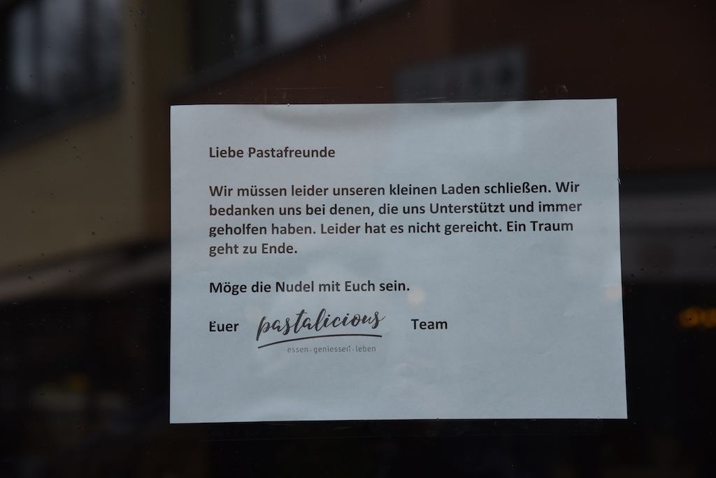 Leider hat es der kleine Pastaladen “pastalicions” am Carlsplatz nicht geschafft, sich zu etablieren. Schon mit der Eröffnung hat es Schwierigkeiten gegeben. Eigentlich sollte der Laden als “Pasta to go” eröffnen. Ein Franchisekonzept , aber der Franchisegeber ist wohl Pleite gegangen. Daher mussten die Inhaber ein neues Konzept finden.