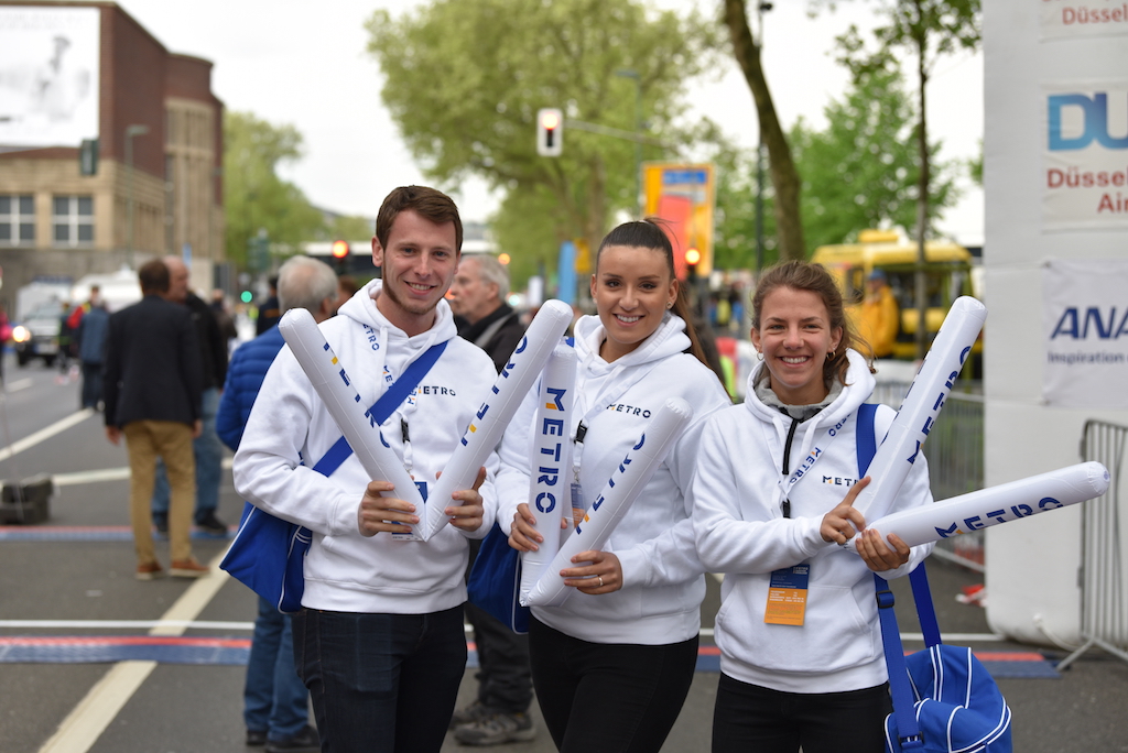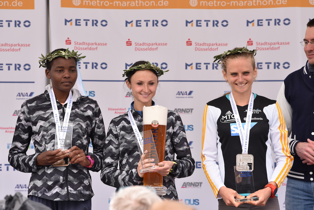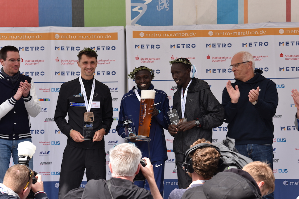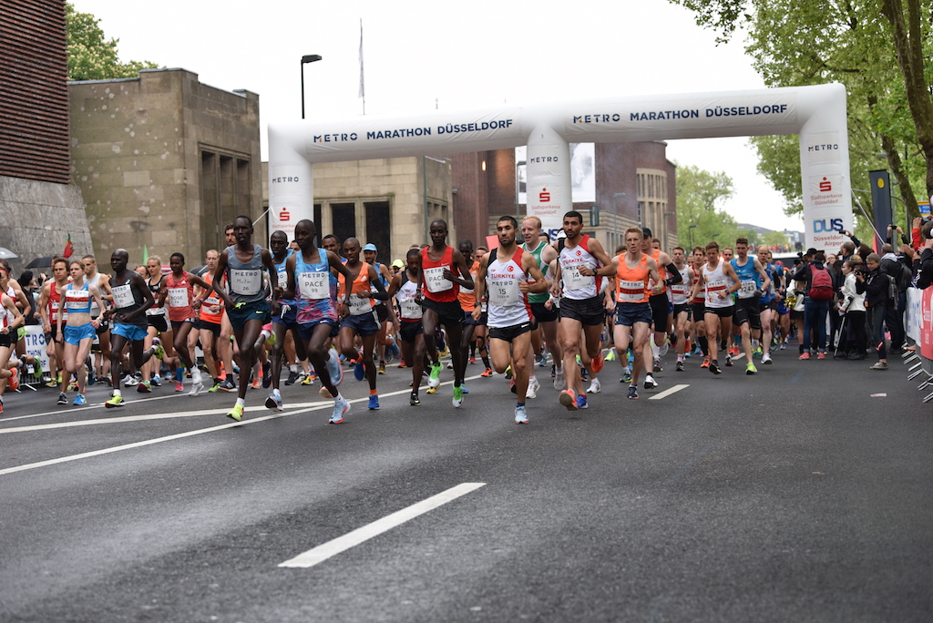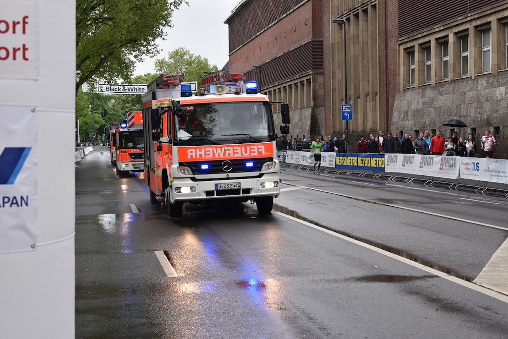 Der Sie­ger und der Zweit­plat­zierte lie­fen bei dem Metro­ma­ra­thon einen Umweg von ca. 1 km. Sie lie­fen einem Poli­zei­mo­tor­rad hin­ter­her, wel­ches falsch abge­bo­gen war. Nach ca. 500 Meter fiel ihnen die­ses auf. Also wen­den und zurück. Trotz die­sem Umweg konnte man Ihnen die Plätze eins und zwei nicht neh­men. Ins­ge­samt nah­men rund 16.000 Läu­fer an dem Mara­thon teil. Rund 4.000 Ein­zel Läu­fer und Läu­fe­rin­nen und 12.000 Staf­fel­läu­fer. Sie­ger wurde Gil­bert Yegon aus Kenia, 29 Jahre, mit der Start­num­mer 7 der Zweite wurde Richard Kip­limo Mutai aus Kenia. Als Drit­ter kam dann schon der schnellste Deut­sche Tom Grö­schel (TC Fiko Ros­tock) im Ziel, der sich damit für die Meis­ter­schaft in Ber­lin qua­li­fi­ziert hat. Bei den Frauen siegt mit Stre­cken­re­kord für Volha Mazu­ronaksie ist den Düs­sel­dor­fer Mara­thon schnel­ler gelau­fen als jede andere Frau. Zweite wurde die Deut­sche Fabi­enne Amrheim vor der Läu­fe­rin aus Kenia Rose Jep­choge Maru Lei­der hatte der Wet­tert nicht ein­se­hen mit den Läu­fern. Direkt zum Start ging ein Regen­schauer über Düs­sel­dorf nie­der. Auch spä­ter reg­nete es noch ein­mal kurz hef­tig. Jedoch tat es der Stim­mung an der Stre­cke kei­nen Abbruch. Die Läu­fer wur­den ange­feu­ert und auch die letz­ten Läu­fer­be­ka­men noch rie­si­gen Applaus. Im Ziel­be­reich hielt sich die Pro­mi­nenz auf. Axel Bel­ling­haus war trotz der Sie­ges­feier am Sams­tag­abend gekom­men, ebenso Axel Speng­ler. Marie-Agnes Strack-Zim­mer­mann­schaute eben­falls vor­bei. Kurz vor dem Start der Staf­fel­läu­fer fuhr die Feu­er­wehr nach durch das Start­tor zu einem Ein­satz in der Reu­ter­ka­serne.