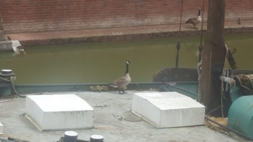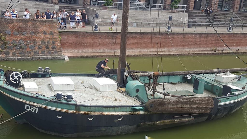 Am Sonntagmittag ging in der Leitstelle der Feuerwehr Düsseldorf die Meldung über eine in Not geratene Gänsefamilie ein. Unverzüglich wurde das Kleineinsatzfahrzeug der Feuerwache Hüttenstraße entsandt und die Düsseldorfer Tierrettung verständigt. Beim Eintreffen der Einsatzkräfte im Alten Hafen, wurde die Gänsefamilie auf dem Vorschiff der “Aalschokker” gesichtet. Da die Gänseküken noch sehr klein waren und die Reling verhältnismäßig hoch, waren diese auf dem alten Schiff gefangen und konnten sich nicht aus eigener Kraft befreien. Mit einem Schnelleinsatzboot setzten die Einsatzkräfte zu dem alten Kahn über und befreite die Familie in Zusammenarbeit mit der Düsseldorfer Tierrettung aus der Zwangslage. Während der Gänsevater davonflog, werden die Gänsemutter und ihre Küken durch die Mitarbeiter der Tierrettung an geeigneter Stelle freigelassen.