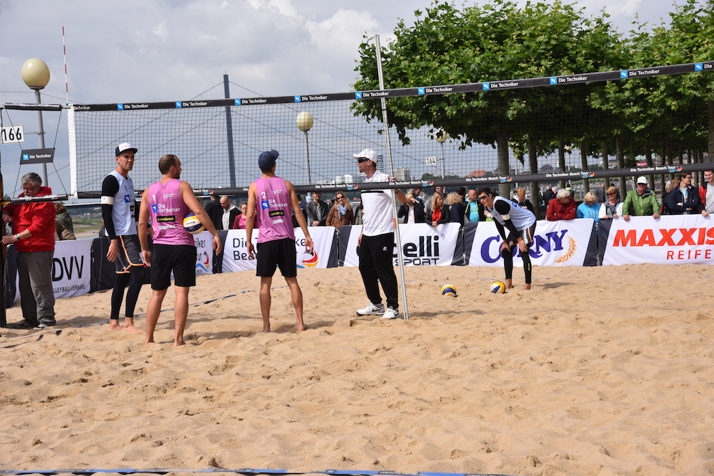 Der Wet­ter­gott hatte heute ein Ein­se­hen mit den Beach­vol­ley­bal­lern in Düs­sel­dorf. Bereits heute früh gin­gen die Par­tien um den Ein­zug ins Finale am Sonn­tag los. Zum Mit­tag füll­ten sich die Besu­cher­ränge und es herrschte Top Stim­mung. Viele Besu­cher mein­ten, irgend­wie ist das mit Urlaub zu ver­glei­chen. Auch der Ver­an­stal­ter ist mit der Loka­tion sehr zufrie­den. Es gab Bei­fall für tolle Aktio­nen und die Zuschauer fie­ber­ten mit den Spie­le­rin­nen und Spielern.