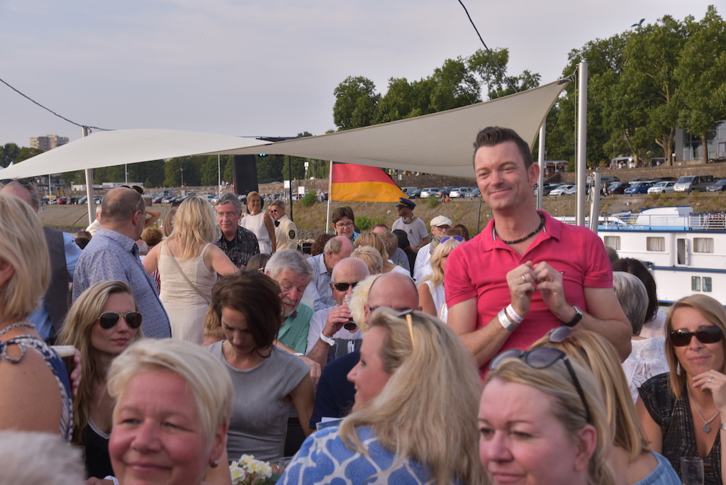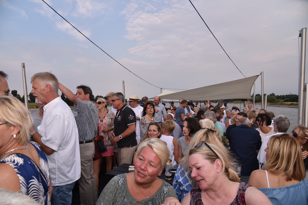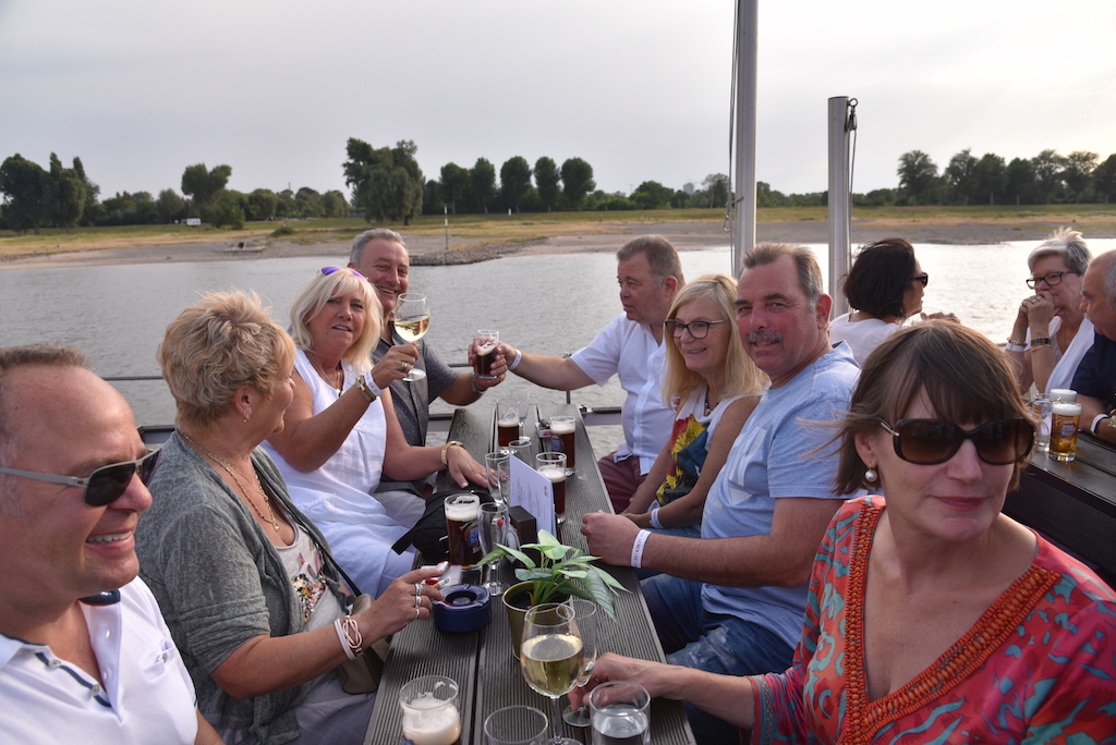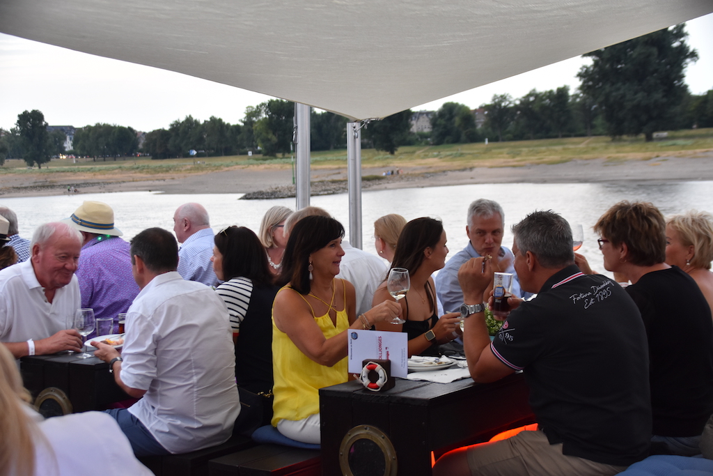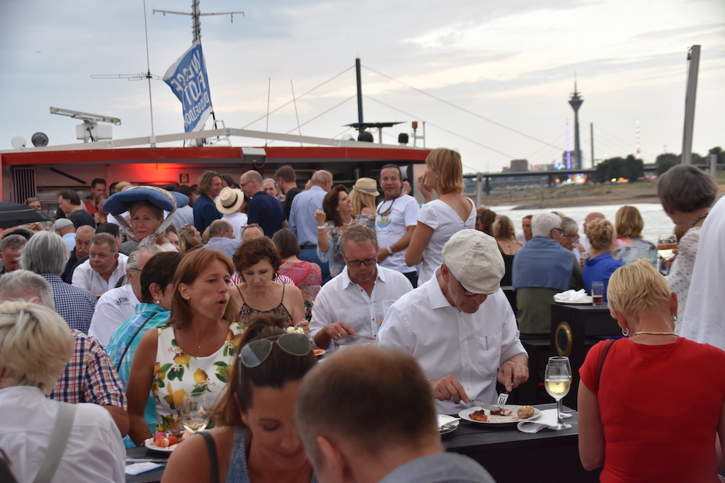 Rund 250 Gästen genossen die Fahrt auf dem größten Schiff der Weißen Flotte der „Stadt Düsseldorf“. Abgelegt wurde um 19:30 Uhr an den Rheinterrassen und die Fahrt ging bei sommerlichen Temperaturen bis Kaiserswerth. Dort drehte das Schiff, um seine Position zum Feuerwerk vor der Kirmes einzunehmen. DJ Kay Marx unterhielt die Gäste während der ganzen Fahrt. Es gab ein Buffet inkl. Getränke, welches alles im Preis von 99 Euro enthalten war.