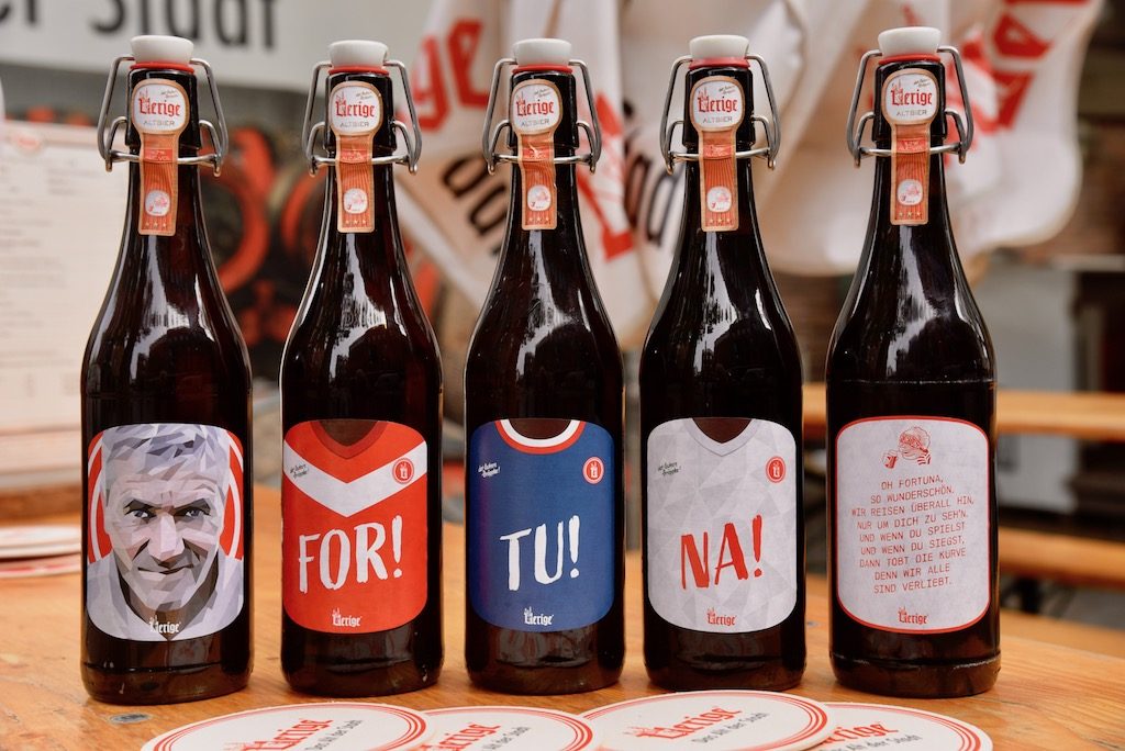 Der Uerige hat eine beson­dere Bin­dung zu For­tuna. Zu beson­de­ren Anläs­sen gibt es  immer Son­der­ab­fül­lun­gen, so auch wie damals zum Auf­stieg in die erste Liga. Am Uerige fei­ern die For­tuna-Fans tra­di­tio­nell die Fei­er­tage ihres Fuß­ball­ver­eins. PS das letzte Eti­kett ist was zum singen 🙂