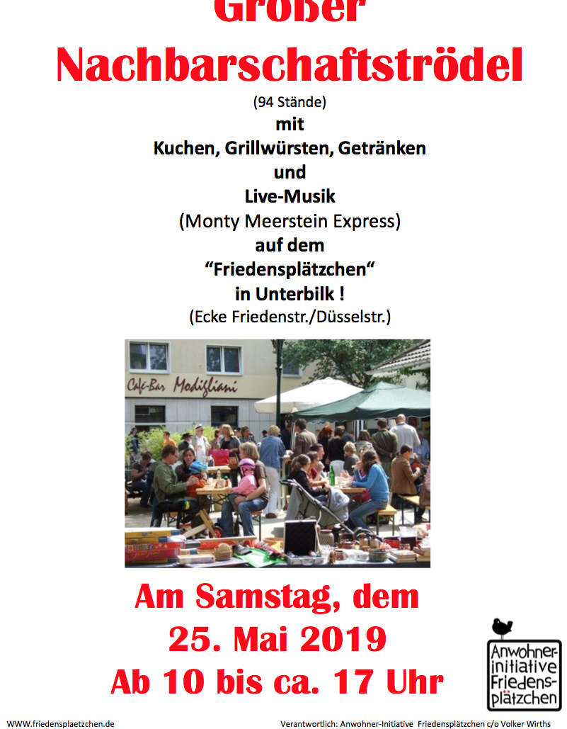 Auch in diesem Frühling wird auf dem Friedensplätzchen in Unterbilk wieder getrödelt, gefeiert, geklönt, Musik gehört, lecker gegessen und Nachbarschaft gepflegt.