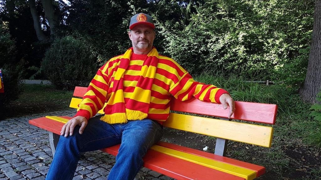 In Augs­burg. Die alte baye­ri­sche Stadt star­tete unjüngst eine Aktion, bei der Bür­ger Park­bänke nach ihren Wün­schen sel­ber gestal­ten konn­ten. Das ließ sich der gebür­tige Rhein­län­der und DEG-FAN Gör­bing nicht zwei Mal sagen: Er nutzte diese Gele­gen­heit und ent­warf eine Gue­rilla-Bank. Gör­bing bepin­selte eine Sitz­bank in den DEG-Far­ben. Recht­zei­tig vor dem Spiel der DEG in Augs­burg steht diese Bank nun in einem Augs­bur­ger Park. Ein Sta­chel im Fleisch der Augsburg-Fans…