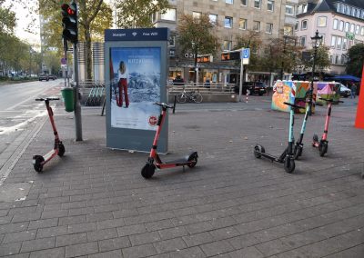 Und immer gibt es wel­che, die dem Fort­schritt im Wege ste­hen. Der Düs­sel­dor­fer Foto­graf Ste­phan Henn ist so einer. Ihn stö­ren her­um­lie­gende Rol­ler, for­sche Scoo­ter-Rüpel wie er auf Face­book gepos­tet hat. Er wünscht sich von der Stadt, die Zügel nicht län­ger schlei­fen zu las­sen: „Daher bitte ich die Stadt Düs­sel­dorf, (hier ins­be­son­dere OB Tho­mas Gei­sel) die­ser Plage Ein­halt zu gebie­ten. Und die Mie­ter und Ver­mie­ter wie­der mit Hilfe von Ord­nungs­amt und Poli­zei zur Ord­nung zu rufen, so daß wir alle wie­der hier in Düs­sel­dorf ver­nünf­tig und unfall­frei leben kön­nen. Danke.“