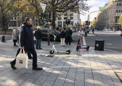 Und immer gibt es wel­che, die dem Fort­schritt im Wege ste­hen. Der Düs­sel­dor­fer Foto­graf Ste­phan Henn ist so einer. Ihn stö­ren her­um­lie­gende Rol­ler, for­sche Scoo­ter-Rüpel wie er auf Face­book gepos­tet hat. Er wünscht sich von der Stadt, die Zügel nicht län­ger schlei­fen zu las­sen: „Daher bitte ich die Stadt Düs­sel­dorf, (hier ins­be­son­dere OB Tho­mas Gei­sel) die­ser Plage Ein­halt zu gebie­ten. Und die Mie­ter und Ver­mie­ter wie­der mit Hilfe von Ord­nungs­amt und Poli­zei zur Ord­nung zu rufen, so daß wir alle wie­der hier in Düs­sel­dorf ver­nünf­tig und unfall­frei leben kön­nen. Danke.“