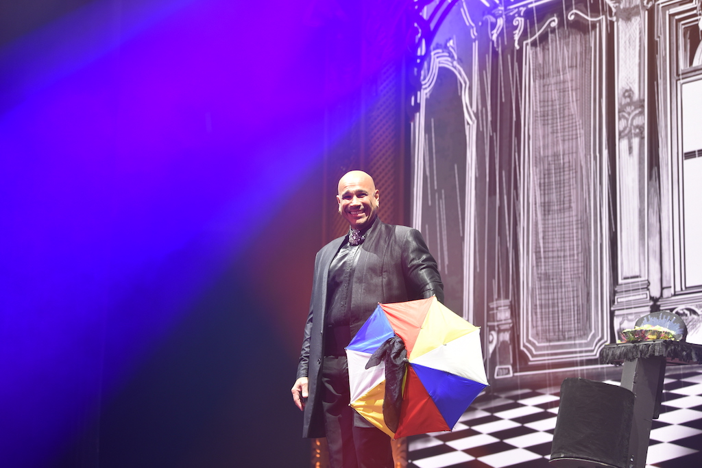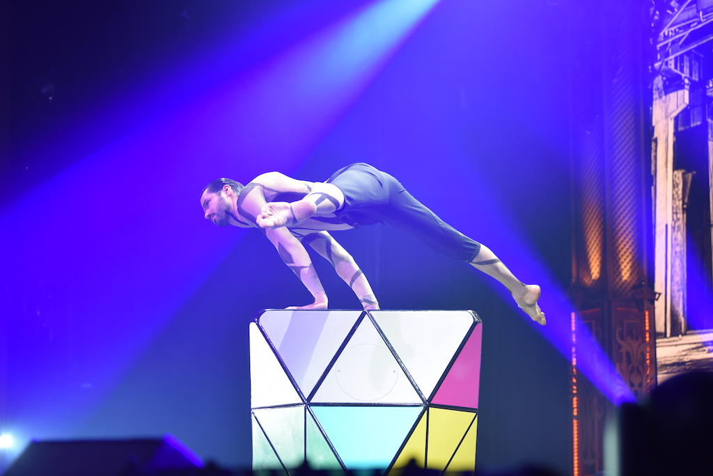 Erholung aus diesen Rätseln finden wir in den anderen Zimmern des Magic Hotels: Ernesto Planas mit seinem unvergleichlichen erotischen Hüftmove, der jede Frau zum Träumen bringt, während Schirm um Schirm ihn vor dem Regen schützen soll, der in seinem Hotelzimmer unablässig herabrauscht. Dass der an Copperfield erinnernde Daniel Craven nicht von den zwei Kreissägen zerteilt wird, ist irgendwie von Anfang an schon klar, auch wenn er gefesselt in der Box dazwischen verschwindet. Es ist schließlich eine Weihnachtsshow und da macht Blut sich nicht so gut. Wie er aber dann plötzlich in der Seitenlounge auftauchen kann, macht wieder klar, wir könnten jederzeit auschecken, aber nicht gehen. Dafür ist es zu fesselnd. Der Franzose Gaetan Bloom führt uns an der Nase herum und lässt uns erleichtert lachen, die Akrobaten Sergey Temofeev, Handstand, Oleg Basanov, Lichtmalerei, gekrönt von der Liebesgeschichte von Diego und Elena, die Quickchange neu erfunden haben, machen das Magic Hotel bunt, schillernd, einladend.