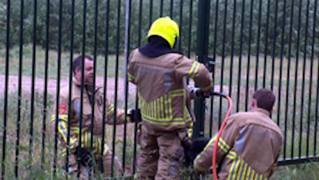 Spaziergänger entdeckten am Morgen des 25. Mai (Montag) ein Reh in einem Zauntor am Grenzweg zwischen Brüggen und dem niederländischen Swalmen. Das Tier steckte zwischen den Stangen des Tores fest. Hintern zu dick!