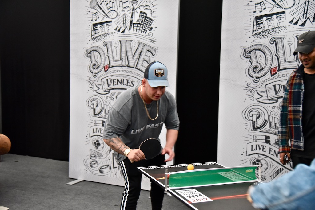 Vor dem Auf­tritt erhiel der Künst­ler noch die Über­gabe des Award der Stadt Düs­sel­dorf. Pie­tro machte einen locke­ren und ent­spann­ten Ein­druck. Bevor es los ging, enspannte er noch bei einem Tisch­ten­nis­spiel mit Kol­le­gen im Back­stage­be­reich, wel­ches er lei­der verlor.