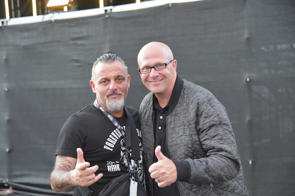 Und dann war es soweit wor­auf die Fans bis 11 Uhr war­ten muss­ten, Pie­tro trat aus einer Nebel­wand auf die Bühne. Große Bei­falls­stürme aus allen Auto’s, Pie­tro lie­ferte eine per­fekte Show ab.