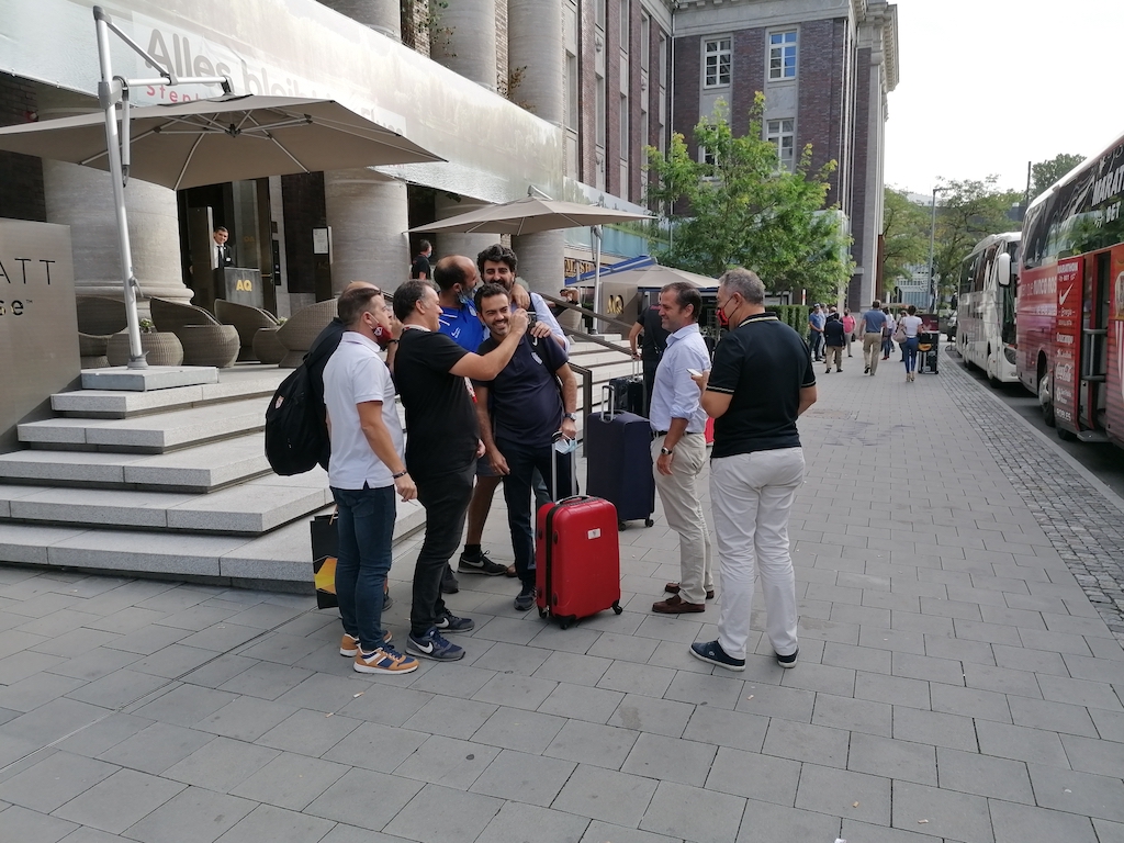 Bei dem völlig entspannten Ausecken aus dem Hotel erfüllten die Spieler bei den wenigen Fans, die sich versammelt hatten, gern Selfis und auch Autogrammwünsche. Es war eine völlig entspannte und lockere Atmosphäre ohne jegliche Starallüren.