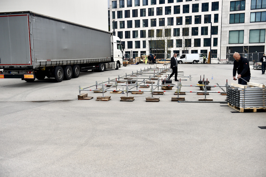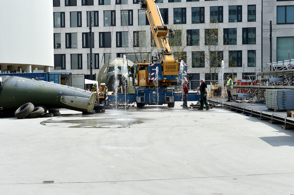 Einem riesigen Baukasten gleich entwickelt Raumlabor auf dem neu gestalteten Gustaf-Gründgens-Platz verschiedene räumliche Situationen, die im Projektverlauf immer wieder neu und anders genutzt werden können. Verschiedene originale Flugzeugelemente sowie eine modulare Tribüne bieten Raum für die unterschiedlichsten Veranstaltungsformate: Inszenierungen, Versammlungen, Workshops, Konzerte oder Filmabende. Gleichzeitig laden die Aufbauten ein zum Verweilen und bieten immer wieder neue Anlässe, den Platz im Zentrum der Düsseldorfer Innenstadt zu erleben.